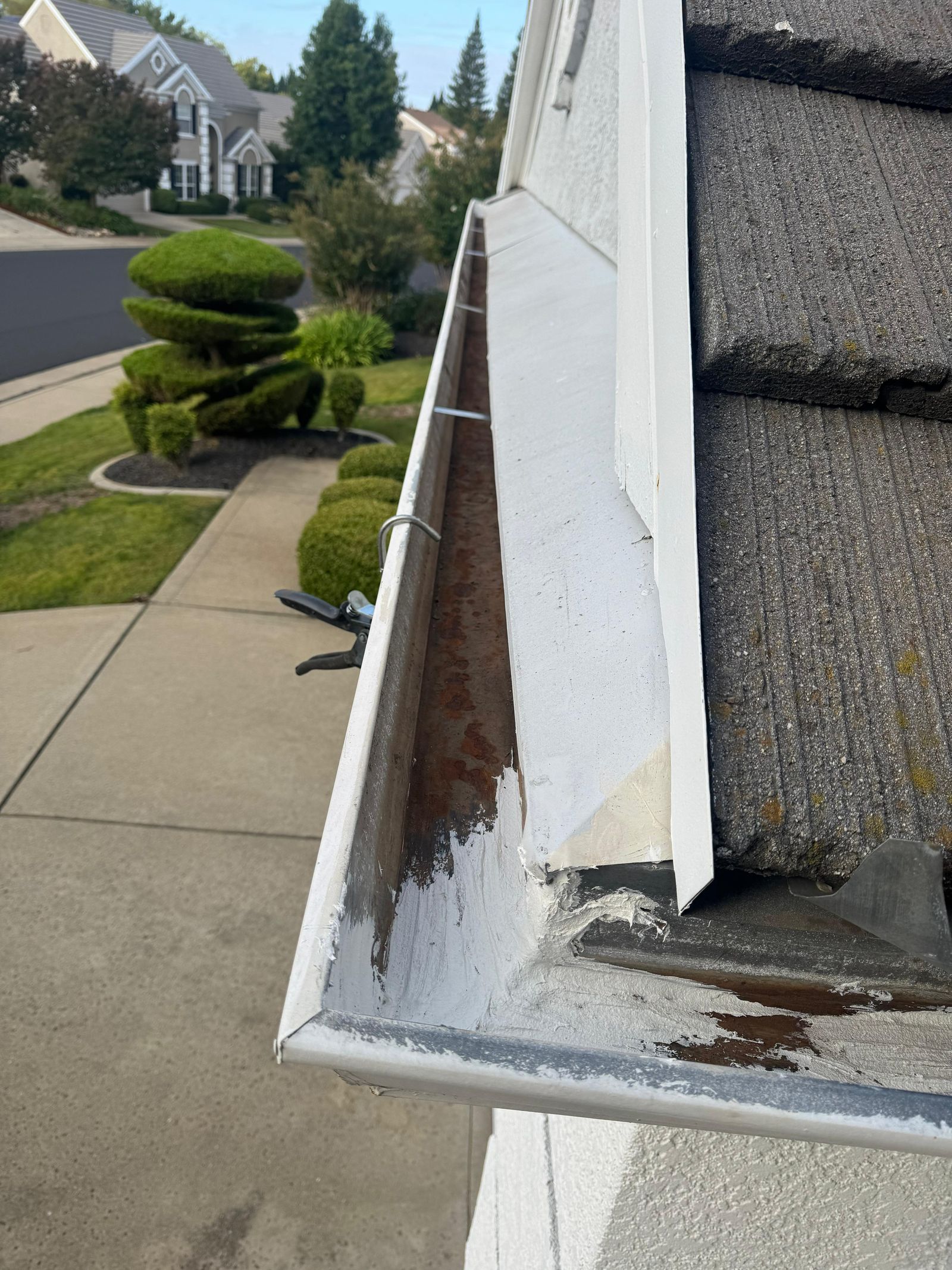 City Gutters Inc., preformed a gutter service by cleaning out gutters of any leaves and debris, cleaning seams and resealing with new gutter sealant.