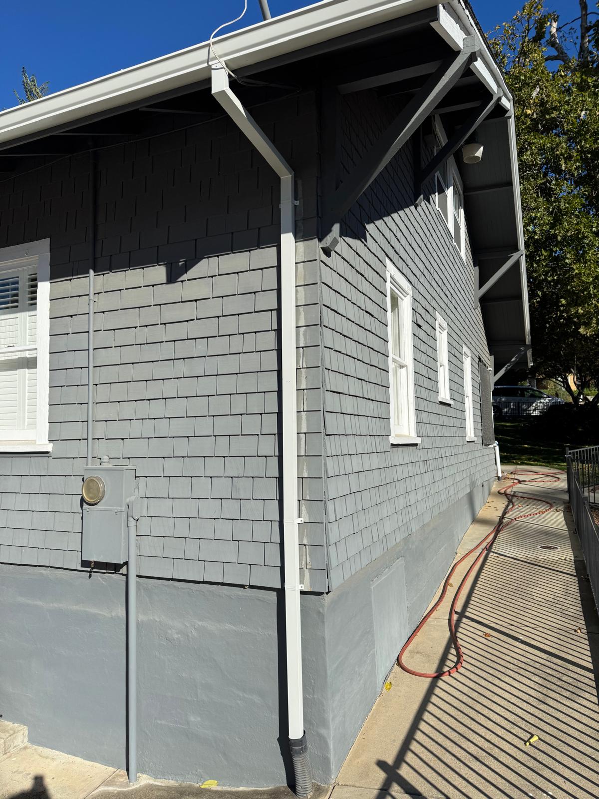 City Gutters Inc. removed and disposed of old gutters and downspouts around the perimeter of the house and garage extension. New OG5 gutters were installed. New 2×3 square downspouts were also installed. Steel micromesh gutter guards were installed around the home and garage extension. Damage was also found at the 1 x 6 fascia at the front of the home, which Elite Construction and Remodel took care of.